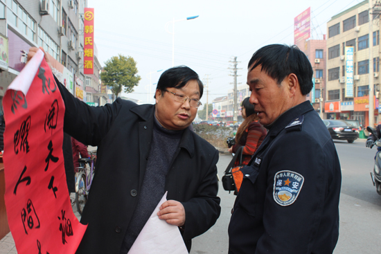 1月20日,常州书画艺术院联合民盟武进区委员会,组织了8位民盟书法家来到武进区奔牛镇,开展“春入万户 福满人间”义务送春联活动,受到当地群众热烈欢迎。 1月20日上午8点半,武进民盟主委陶锋就来到了活动现场,与奔牛镇文化站郭林曦等一起布置场地。当“武进民盟、德彩网书画院送春联下乡”的横幅一挂起来,便吸引了过往群众好奇的目光。 9点,民盟市委副主委黄勇亲自带队,中国书法家协会会员周慕谷、蒋寿元,江苏省书法家协会会员朱翰钧、陈国新、郭德昌、朱丹、谢伟及盟员刘卓来到活动现场。虽然寒风习习,但书法家们却热情高涨。书法家们在一字排开的六张书桌前,裁纸调墨,分工合作,迅速摆开阵势。更多的群众拥上来。每一位书法家非常热情地答应着群众的要求。他们铺开红纸,饱蘸浓墨,有的挥洒自如,有的凝重沉着,有的轻盈灵动,一副副洋溢着喜庆吉祥之气的春联从他们的笔下诞生。真隶行草,诸体兼备;福禄寿喜,祝福满纸。有位写“福”的书法家,创意新颖,书画结合,将马头嵌于“福”字中,寓意“马上有福”更是受到群众的喜爱和热捧。两个小时里,书法家们现场书写了500余副春联、300多个“福”字赠送给了当地村民,向他们送上新春祝福。 奔牛镇文化站为这次活动也提供了大力支持。(翟建刚 刘静静)