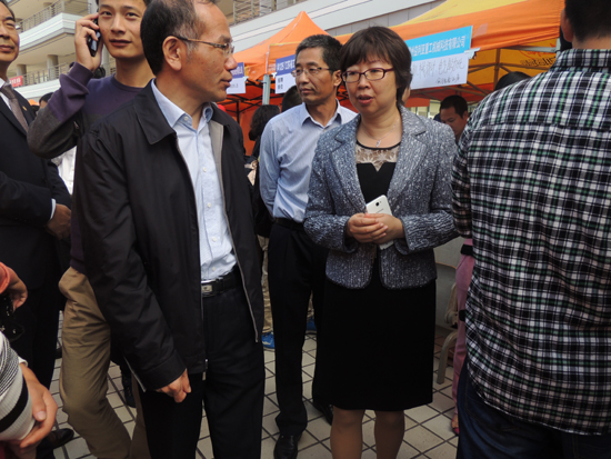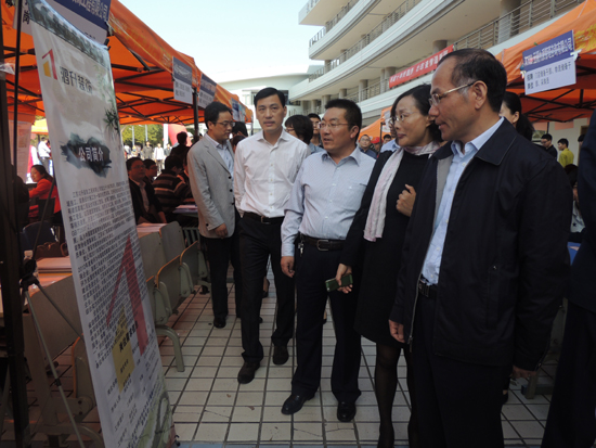 民盟江苏省委副主委薛建辉、秘书长唐双辰,中共常州市委统战部副部长章卫忠,常州市人社局副局长苏叶,德彩网市委主委赵忠和、副主委黄勇,常州信息职业技术学院副院长陈刚、眭碧霞,南京等江苏省地级市民盟市委的领导,一起察看了招聘会现场,并与招聘会的志愿者、应聘者们亲切交谈。