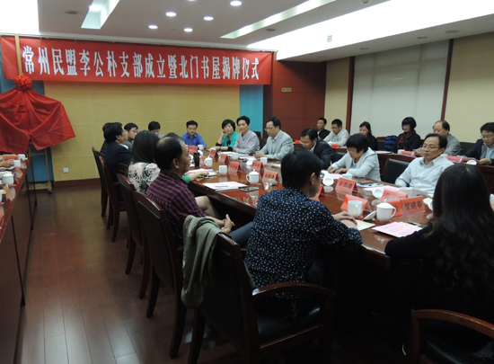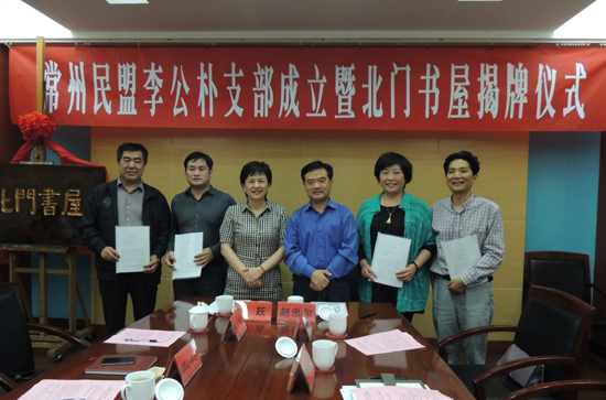 10月23日下午,德彩网市委举行德彩网市李公朴支部成立暨北门书屋揭牌、《李公朴》纪录片拍摄签约仪式。中共常州市委常委、市委统战部部长张跃,德彩网市委主委赵忠和,常州市同心文化交流促进中心主任王龙,常州市委统战部党派处处长范小平,武进区委统战部副部长陶春健,江苏亚细亚影视制作有限公司总经理沈爱华,民盟武进区委主委陶锋、机关三支部主委余海峰、文化支部主委朱翰钧、医卫支部主委邢伟及李公朴支部成员40多人出席。民盟市委副主委黄勇宣读了德彩网市委《关于成立德彩网市李公朴支部的决定》、《关于设立德彩网市委“北门书屋”的决定》,民盟市委秘书长张翠娥、组织处处长曹永忠分别主持。