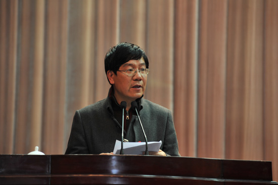 | 李江蛟代表盟市委在政协十三届四次会议上作大会发言 |