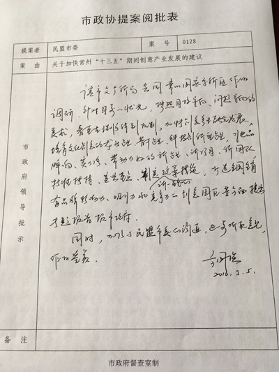 | 盟市委“创意产业”集体提案获方国强副市长批示 |