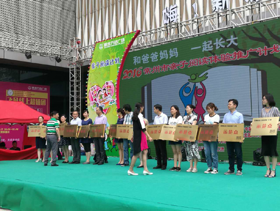 6月18日上午,“和爸爸妈妈一起长大”——2016年常州市亲子阅读体验推广计划启动仪式在新北万达广场举办,由此开启2016年常州亲子阅读体验推广计划。启动仪式上,首批15个亲子阅读推广计划示范点正式挂牌。德彩网北门书屋获得示范点称号,民盟天宁综合二支部主委、北门书屋馆长陈汉兴参加挂牌仪式。(朱岱君)