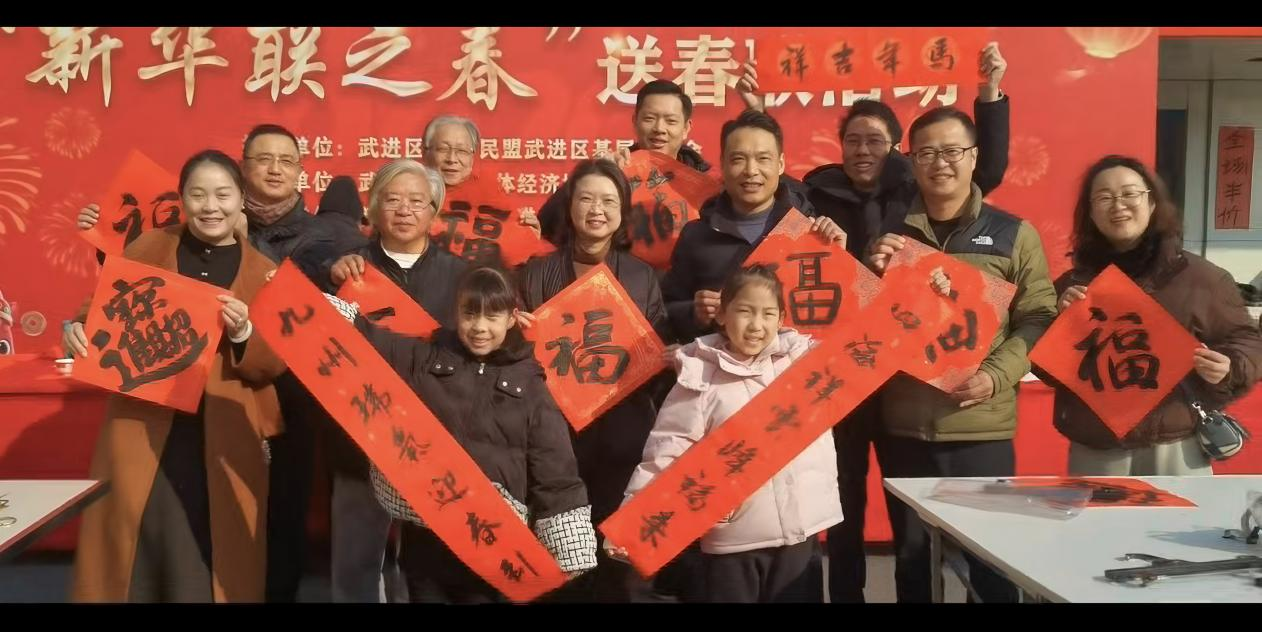 翰墨飘香添年味,红笺送福暖人心。2026年1月24日上午,武进湖塘新华联商场外暖意融融、喜气洋洋,“新华联之春”送春联活动在此温情启幕。本次活动由武进民盟基层委倾情组织之一,周敏主委带队,文化支部陆献新、王明盛、张毓阳三位盟员现场挥毫,为市民送上丙午新春的美好祝福,让传统书法文化的馨香浸润街头巷尾。 活动现场,大红的宣纸整齐铺展,笔墨纸砚一应俱全,早早便吸引了往来市民驻足等候。在大家的期待中,陆献新、张毓阳、王明盛三位盟员凝神聚气、提笔挥毫,笔锋游走间,或端庄工整的楷书,或飘逸洒脱的行书跃然纸上。一副副寓意吉祥的春联,承载着对新年的美好期许;一个个饱满圆润的“福”字,饱含着真挚的新春祝福,墨香萦绕间,将浓浓的年味儿和温暖的情谊传递给现场每一个人。 周敏主委在现场与市民亲切交流,询问大家的新春期许,亲手将写好的春联和福字送到市民手中。市民们有序排队,或静心欣赏书法创作的魅力,或挑选心仪的联句请书法家书写,拿到墨迹未干的春联和福字后,脸上都洋溢着幸福的笑容,纷纷表示手写的春联更有温度、更具年味,这份别样的“文化年货”让新春的喜悦更浓。 此次“新华联之春”送春联活动,是武进民盟发挥界别人才优势、践行社会责任的生动体现,既以群众喜闻乐见的方式弘扬了中华优秀传统文化,营造了喜庆祥和的新春氛围,更以笔墨为媒拉近了与群众的距离,让民盟的温情走进百姓心中。下一步,武进民盟将继续坚守“奔走国是、关注民生”的初心,开展更多接地气、暖人心的文化惠民活动,让传统文化在基层焕发出新的生机与活力,为丰富群众精神文化生活贡献盟员力量。 撰稿:张毓阳
