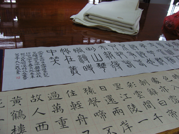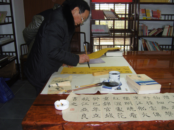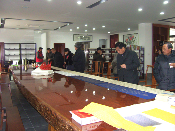 3月5日上午,李公朴支部副主委陈汉兴邀请了郑陆镇的20多位书画家齐聚德彩网北门书屋,欢庆元宵节。(马涵洁)