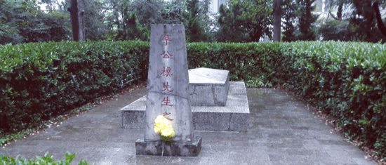1946年7月11日晚,李公朴先生外出返家,在一条小巷中,被国民党特务开枪,中弹倒下,7月12日晨,救治无效而殉难。先生的遗体后来安葬于上海龙华烈士陵园。后人为了纪念这位民盟先烈、民主斗士,在西南联大旧址的“一二一”烈士陵园后方的小山坡上,建立了他的衣冠冢。