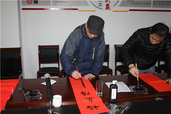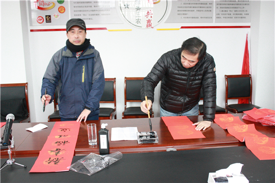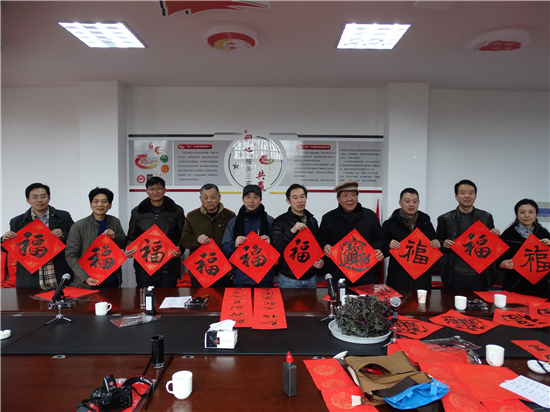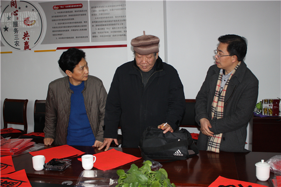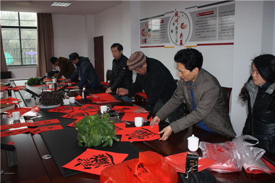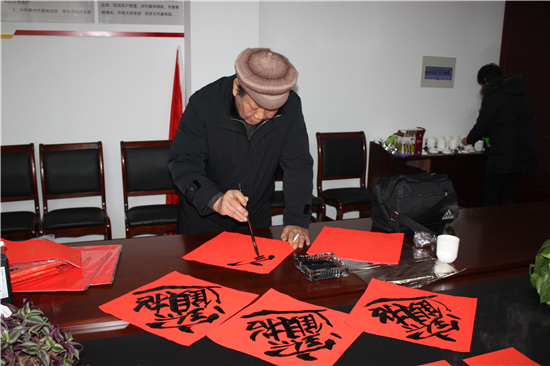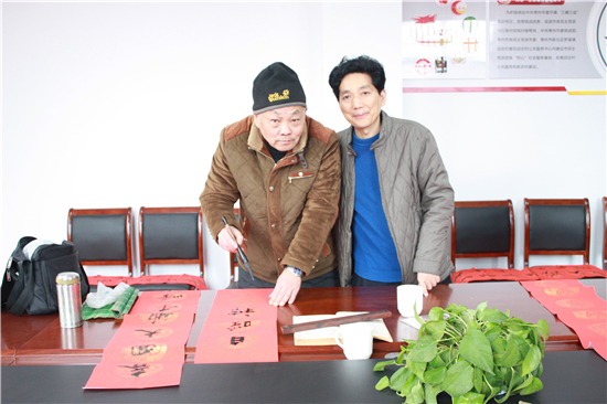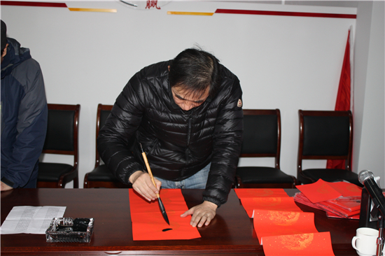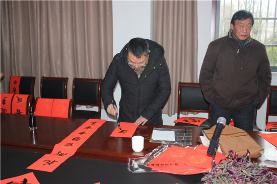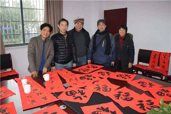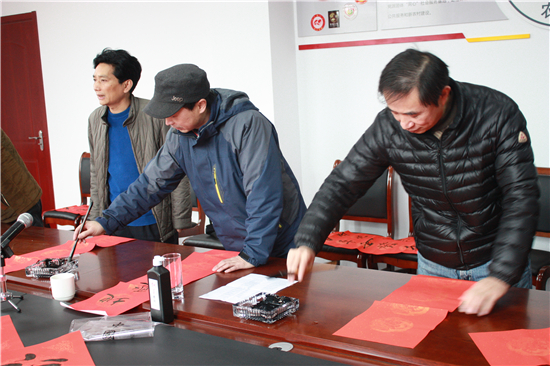 1月28日上午,在市委统战部的组织下,德彩网市委专职副主委黄勇,民进市委委员、民进市委办公室主任丁蔚率民盟、民进书法家以及部分机关干部一行10余人,来到了新北区罗溪镇的邱庄村,开展义务送春联活动。 在邱庄村的党派服务基地中,民盟、民进六位书法家周慕谷、蒋寿元、景文静、谢伟、谢飞、章哲诚一共六位书法家挥毫泼墨,各种笔体的“福”字,一对对火红的对联,受到了当地居民们的青睐。活动得到了新北区罗溪镇、邱庄村的积极响应,罗溪镇宣统委员朱孟君、邱庄村党总支书记颜红平也来到了现场。(万俊 金玉兰)