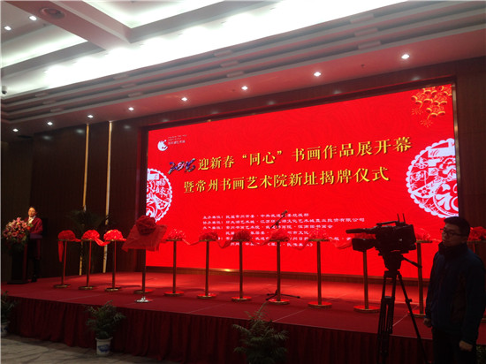 2016年1月30日上午,迎新春“同心”书画作品展暨常州书画艺术院新址揭牌仪式在环太湖艺术城多功能厅隆重举行。民盟武进区委作为承办方,不仅精心组织作品参展、积极发动盟员观展,还为本次文化盛宴的场所和资金提供了有力保障。 文化支部主委、江苏环太湖文化艺术城有限公司董事长钱臣热心安排活动场所,经开区总支主委、江苏鸿联集团有限公司董事长周金瑞无偿出资赞助,盟员周晓东、陆献新、张振等认真创作作品,其他盟员书画爱好者积极参加开幕式并尽情享受了本次艺术大餐。(顾晓霞)