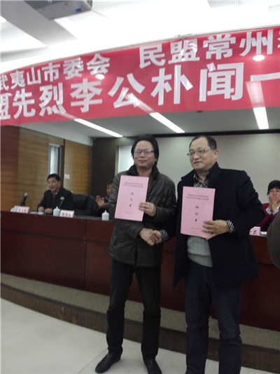 2016年3月26日,德彩网李公朴支部部分盟员远赴福建,与民盟武夷山市委一起举办“纪念李公朴、闻一多烈士殉难70周年”系列活动。活动由民盟武夷山市委副主委蒋小武主持,盟中央宣传部副部长曲伟、中共武夷山统战部副部长周典林出席并讲话,民盟武夷山主委马素花、德彩网市原主委赵忠和、德彩网市委宣传调研处刘静静、德彩网李公朴支部和武夷山的盟员近80人参加活动。 盟中央宣传部曲伟部长对纪念民盟先烈的活动点明了新的时代意义。曲部长指出:李公朴、闻一多烈士至今值得我们学习,是烈士们把读书与做人结合起来,把求知和追求民主结合起来,毛泽东曾盛赞李公朴“威武不屈,富贵不淫”,就是这种中国精神的生动体现。我们在实现“中国梦”的过程中,尤其要弘扬这种中国精神。 武夷山统战部周部长对盟员嘉宾的来访交流表示热烈的欢迎。周部长介绍,李公朴、闻一多是中国知识分子的楷模,是中国共产党的朋友。我们现在共温70年前悲壮的历史,是学习、弘扬他们高贵的品格,更能提升盟员的思想素质,增进两地民盟的交流。武夷山颇具特色的茶文化的发展,也离不开民盟盟员的积极促进。 德彩网李公朴支部主委倪建春在纪念会上,从支部的命名成立、人员组成、工作思路、实践活动、计划发展等多方面,详细介绍了一年以来支部的活动情况,播放了李公朴支部2015年活动记录短片,让在场盟员感同身受地体验到公朴支部 “爱国、民主、同心、奉献”的核心价值观和“宣传公朴、倡导公益、关心民生、繁荣文化”为的工作宗旨。倪主委还自豪地告诉盟员们,弘扬公朴精神,我们不仅有“支部之歌”,有“德彩网李公朴支部”的大旗,全体盟员“追寻公朴足迹”万里行活动支部盟员写的一篇篇感悟文章即将汇编成《追寻之旅》一书出版。倪主委的介绍让在座的兄弟支部的盟员们对提升盟务活动质量获益匪浅。民盟武夷山美术支部主委杨龙介绍了美术支部情况,会上德彩网李公朴支部和武夷山美术支部双方还签订了友好支部协议。 在交流会的最后,常州李公朴支部盟员汤亚萍宣讲了《社会教育家李公朴先生》的公朴事迹报告。汤亚萍在报告中,从公朴教育思想的启蒙到发展,用鲜活的事例介绍了公朴如何以社会教育为切入点,把民主教育和抗战救国很好地结合起来。汤亚萍结合参加“追寻公朴足迹”参观学习的体会和阅读《李公朴文集》和《李公朴传》等文集,用详尽的事实和准确的数据在现了公朴“仁者不忧,知者不惑,勇者不惧”的一生。 3月26日下午,在武夷山君顶酒店书画院澜溪轩,常州、武夷山两地艺术家盟员举行“岩骨墨香”2016年笔会——民盟纪念李公朴闻一多英烈书画创作活动。常州书画艺术院院长、民盟文化总支主委朱翰钧和常州书画艺术院特聘画师、文化三支部主委李东波和民盟中央原宣传部长吴志实、民盟中央美术院常务副院长冯晓磊、理事何军委等会同民盟中央美术院武夷山书分院杨龙院长等当地书画家,同台泼墨挥毫,用画笔表达对英烈的敬仰、弘扬之意。 本次“纪念李公朴、闻一多烈士殉难70周年”系列活动,让常州、武夷山两地盟员民盟不仅学习了先烈们的高贵品质,提升了思想品质,同时增强了基层盟员组织的沟通,提升了盟务活动的品质。(文/汤亚萍 姜美伊,图/刘静静)