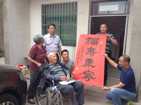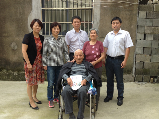 近日,民盟溧阳市基层委主委谢菊芬、委员陈正及办公室成员唐银芳等一行3人,由市委统战部何筛平副部长率队,来到戴埠横涧村,登门探望了1947年入盟、现年93岁高龄的离休老盟员梁山老师,把统战部和盟基层委的关怀温暖和节日祝福送到他身边,带去了2016年《常州盟讯》刊物和“福寿康宁”书法字,并向他介绍了民盟今年前三个季度的工作及第四季度的工作思路等,梁老师对统战部和基层委每年两次的走访慰问感动万分、为溧阳的发展以及民盟的工作感到高兴,表示赞叹。他言语间流露出了对民盟的深厚情感,并提出要让其在横涧中学从事教学后勤工作的儿子积极争创条件,早日加入盟组织,传承民盟精神,积极主动为盟作贡献。(唐银芳)