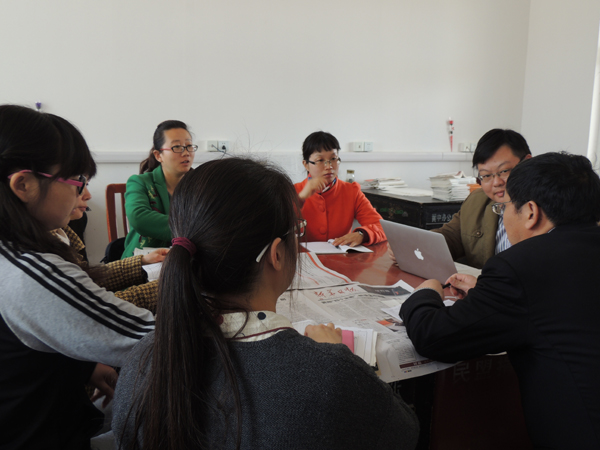 这次支教的主要内容是听课、评课、备课、作业批改、社团建设。出发之前,沈惠琴校长专门召开支教会议,提出要求,布置任务,她由于工作繁忙不能亲自参加还委托许晓红老师一定要在17日晚上召集大家再次研讨和交流,确保每项内容做到位。孟赟、许晓红、薄静怡、杨晓洁四位老师分学科认真听取了初二年级语文、数学、英语、物理各一节课,按教研组分析点评了课堂教学,事前还了解到即将备课的单元与章节,将正衡集体备课成熟经验介绍给黄集老师,同时将作业批改“一批、二批、三批”的做法和每次需要解决的问题做了充分介绍。正衡老师已经不是光说意义了,而是手把手地讲细节和具体的做法。数学课后,黄集中学的一位老师对许老师说:“这节课的内容您曾经在这里上过公开课,我们老师已经学到您的真传了”。孟老师是第一次参加民盟活动,今天听课的内容是《花儿为什么这样红》,他很早就到教室,和学生交流,参加一组学生的课堂讨论,课后再和学生讨论,问学生这节课结束后,请学生说说花儿为什么这样红?找到备课和课堂教学中怎样在点题上展开和引导。通过了解黄集因为班级少,一年年级同学科任课老师少影响集备的情况,我们还向学校提出了按教研组进行集备,更易于打通初中学科教学,得到学校认可。许晓红老师还以“向学生展示老师的另一面”介绍了正衡红红火火的社团建设。五月,黄集还将派老师现场考察正衡社团建设,8月份还将组织老师参加正衡暑期新教师培训。