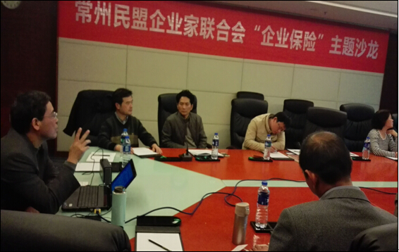 2015年11月24日,我市民盟企业家联合会“企业保险”主题沙龙顺利举行,盟市委主委赵忠和、副主委黄勇到场指导沙龙活动。 常州市保险学会秘书长郭文昌先生作了题为《企业的风险评估与保障机制建设》主旨演讲,他从“灾害事例”、“风险和风险管理概念”、“文件解读”、“主要险种简介”等方面进行了精彩的分析与阐述;在互动环节,在场的民盟企业家就各自关心的企业保险问题与郭秘书长开展了咨询交流和观点碰撞,会员们深感教益多多。“企联会”会长蒋建新,副会长赵翔、张同伟、张文伟,秘书长朱万先及部分理事、会员参加活动。活动由“新联会”秘书长李永达主持。(莫止)
