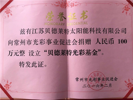 ——盟员张同伟捐资设立“贝德莱特百万光彩基金” 在当天的常州空港产业园年度罗溪镇商会年会暨企业家新春座谈会上,举行了“贝德莱特百万光彩基金”捐赠颁证仪式,中共常州市委统战部副部长、市工商联党组书记查艳向张同伟授予捐赠证书。会上,张同伟还当场向贫困学生捐赠了助学金。 身为新北区青联副主席、罗溪镇商会会长、江苏贝德莱特太阳能科技有限公司董事长的张同伟表示,作为民盟成员和企业家,对社会建设和发展不仅要有热情,还要有使命感,要在积极发挥经济界人士资源优势的基础上展示自身价值。他常引用的一首小诗很能抒发其心声:这么多年,你一直在我心口幽居,我放下过天地,我放下过万物,却从未放下过你。渐悟也好,顿悟也好,世间事除了奉献,哪一件事不是闲事。 据了解,张同伟一向热心公益事业,他在带领自己的企业不断发展创新的同时,也在履行企业的社会责任:2008年为汶川大地震捐款6万余元、2009年向常州市慈善总会捐赠价值50万元的太阳能热水器、2010年通过团省委向大学生创业大赛捐赠60万元、2011年通过团市委赞助3万帮助常州青少年戒网瘾、2012向罗溪镇慈善基金捐助10万元、2012向西夏墅镇捐助3万元以安装路灯、2013向 “青企联慈善基金”捐助5万元、2014年向常州市聋人学校捐赠价值20万元的太阳能热水器、2015年向罗溪镇团委捐助1万元帮助贫困生、同年通过常州音乐台向陕西贫困地区学校捐助音乐器材给陕西学校——2008年以来他每年均有捐赠项目,捐赠的钱、物累计折合人民币仅300万元。他在带领自己企业不断发展创新的同时,曾获得“常州市新北区青年创业楷模”、“中国太阳能热水器行业十佳新锐人物”、“常州市十大创业青年 ”、“江苏最具影响力网商”(阿里巴巴评选)等多种荣誉。 常州是全国著名的慈善之都,德彩网更有一批怀攒爱心的企业家对光彩事业独有情种,德彩网之前已经存在的三个“百万光彩基金”,分别是盟员蒋建新牵头设立的“丽华快餐百万光彩基金”、盟员宋江牵头设立的“天人合一文化发展百万光彩基金”和德彩网“企联会”设立的“同心光明百万光彩基金”。(莫止 杨贞)