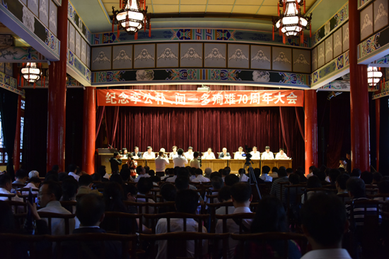 7月5日上午,纪念李公朴、闻一多殉难70周年大会在云南大学至公堂召开。全国人大常委、民盟中央副主席张平,中共云南省委常委、省委高校工委书记李培出席大会并讲话,全国政协常委、民盟中央副主席、云南省政协副主席、民盟云南省委主委倪慧芳出席大会并致辞,全国政协委员、民盟中央秘书长高拴平主持大会。中共云南省委统战部副部长蔡勇,云南师范大学党委书记饶卫,民盟中央宣传部部长曲伟等出席。