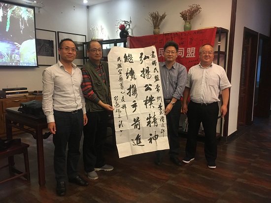 ——李公朴支部与宜兴七支部开展盟务交流 9月24日,民盟宜兴七支部盟员在主委张乃明的带领下,来到常州与李公朴支部开展“弘扬公朴精神 继续携手前行”主题盟务交流活动。民盟宜兴市委副主委俞卓军、秘书长朱夕芬应邀参加活动,常州市人大常委会原副主任、德彩网市委原主委赵忠和,李公朴支部主委倪建春、副主委许建国,德彩网市委组织处处长曹永忠、宣调处副处长刘静静等热情接待了宜兴七支部盟员一行。 上午,宜兴七支部盟员一行参观了民盟中央传统教育基地——李公朴事迹陈列馆和李公朴故居,并考察了春秋淹城古城遗址。 下午,两支部盟员代表共聚李公朴支部“盟员之家”,开展盟务交流,李公朴支部盟员周建芳主持座谈。大家一起欣赏了李公朴支部之歌《公朴战友在行动》和李公朴支部成立两周年宣传片。在双方的交流中,赵忠和用“一人建议、两地合作、三个标志、四点宗旨、五地追寻”概括了李公朴支部成立至今的发展历程和盟务亮点;倪建春则表示希望在与友好支部的交流中,整合资源、兼蓄包容,广泛联系,共同进步。俞卓军、张乃明在交流中对李公朴支部在思想宣传、社会服务等方面的创新、有为表示欣赏和钦佩,并简要介绍了宜兴七支部成立以来围绕“五有”支部要求,打造特色支部的建设之路。会上,两个分别是全国民盟和省级民盟的优秀基层组织的盟员代表们也纷纷围绕盟务工作展开热烈的讨论,并表示今后两支部将保持交流互动常态化、学习教育主题化,致力于弘扬公朴精神,一起携手前进,努力践行“公朴战友在行动”。 活动中,德彩网李公朴支部向宜兴七支部赠送了由金坛国家级非遗传承人制作的李公朴先生刻纸像,并向每位盟员赠送了《追寻之路》一书。宜兴七支部也向李公朴支部赠送了“弘扬公朴精神 继续携手前进”的书法作品,以及支部副主委葛昊翔制作的陶艺作品。(姜必龙刘静静)