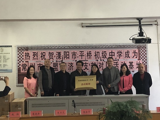 集山水之灵韵,育公民之素养。2017年10月18日,德彩网经济三支部与溧阳市平桥初级中学,在天目湖源头、平桥母亲河的见证下,举行了结对助学支教,建立活动基地的揭牌仪式。 盟市委专职副主委兼秘书长张翠娥、办公室主任沈虹,德彩网经济科技总支主委宋江,总支副主委蒋建新、赵翔,宣传委员兼经济三支部主委朱万先,总支组织委员戴黎黎以及平桥初中校长杨金华出席。经济三支部的盟员与平桥初中的师生代表也参加了仪式,双方进行了亲切而热烈的沟通交流。就平桥初中与经济三支部的深化帮扶活动,都踊跃提出了各自的建议。 杨金华校长代表溧阳市平桥中学向盟市委及经济三支部的支教物资捐赠表示感谢。张翠娥指出,这次结对帮扶对双方而言,是一场“资、智、志、制”共建的伟大工程,秉持初心,互帮互助,希望经济三支部和平桥初中的师生们,在接下来的深化活动中,能取得更为圆满的成绩。(邢霞 朱万先)