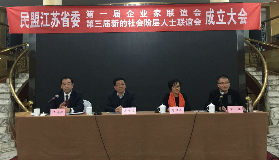 今年2月23日至24日,全国新的社会阶层人士统战工作会议在北京召开,本次大会以全国新的社会阶层人士统战工作会议精神为指导,将原江苏民盟新的社会阶层人士联谊会(简称“新联会”)中的部分企业家析出成立了江苏民盟企业家联谊会(简称“企联会”),同时进行了省盟“新联会”的换届。经过推选,我市民盟“新联会”会长宋江担任省盟“新联会”会长,我市民盟“企联会”会长蒋建新担任省盟“企联会”副会长,我市民盟“志协会”副秘书长担任省盟“新联会”副秘书长。真是:“常州模式”花开省内,省盟搭建两会平台!