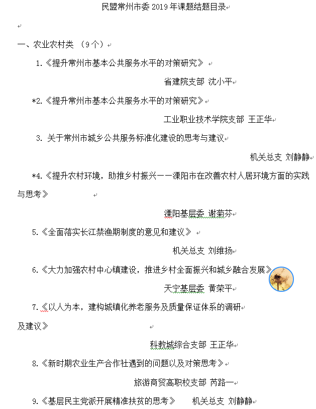 | 2019年10月24日下午,德彩网市委在市行政中心裕民厅召开2019年课题推进交流会。德彩网市委副主委沈惠平、黄勇、张翠娥出席会议。来自各基层组织的课题组成员代表共计20余人参加会议。德彩网市委宣传调研处副处长刘静静主持会议。 刘静静通报今年德彩网市委37个立项课题的整体情况。自今年2月,课题工作启动以来,各基层组织充分重视、积极响应,共申报37项课题。在课题选题、调研、撰稿过程中,呈现出调研扎实、报告质量高、课题成果丰硕的特点。截止目前,盟市委已收到合格的结题调研报告共计35篇,其中有多篇已作为研究成果在省盟各类论坛、研讨会上获奖。 陆克寒、王正华、唐银芳等课题组成员代表在会上汇报了课题进展、主要内容。 沈惠平在讲话中强调参政议政工作的重要性,肯定盟市委参政议政骨干们在撰写调研报告过程中表现出的高涨的热情、扎实的调研,同时他还特别针对今年课题提出背景意义要简明扼要、问题现状要客观准确、对策建议要切实可行的三大要求,希望执笔人继续修改完善调研报告。 张翠娥带领大家学习习近平对新时期民主党派提出的“四新三好”新要求,希望大家不仅要做好参政议政的“原创者”,积极撰写高质量的信息、调研报告,还要做好参政议政的“合作者”,在调研报告的选题、调研、方法上积极与盟市委沟通,争取将调研成果最大化。(刘静静)