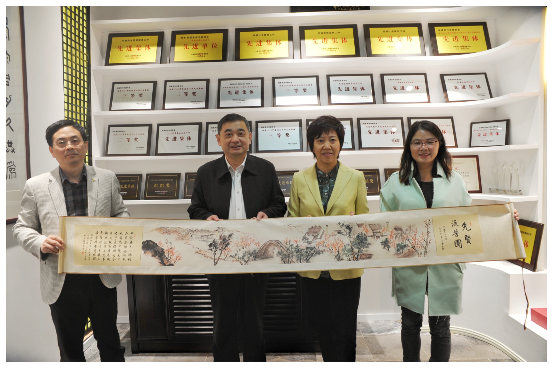 11月14日-15日,铜陵市政协副主席、民盟铜陵市委主委、市中级法院副院长洪维助率铜陵市政协学习考察组一行18人来常考察交流。德彩网市委主委、副市长许峥,常州市政协副主席何玉清陪同考察。 在常期间,考察组一行先后前往常州博物馆、江南环球港,及位于青果巷历史文化街区的常州盟史馆、周有光图书馆、史良故居进行实地考察,深入了解我市生态文旅融合发展情况,并考察民盟传统教育基地建设情况。在常州盟史馆,许峥向铜陵一行赠送《先贤流芳图》卷轴和盟史书籍。考察过程中,常州优美的生态环境、深厚的文化底蕴、丰富的统战名人资源给铜陵市政协学习考察组一行留下深刻印象。 陪同考察的还有常州市政协副秘书长、办公室主任蒋鹏飞,市政协港澳台侨与外事委副主任蒋华东,德彩网市委专职副主委兼秘书长张翠娥、办公室主任刘静静。
