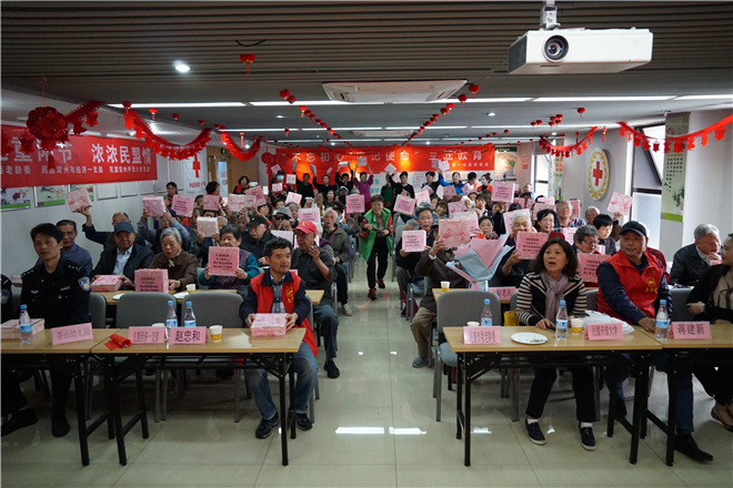 10月21日下午,清凉一社区、德彩网老龄委、德彩网市经济一支部和德彩网开放大学在清凉一社区举办“爱在重阳,敬老一生”的重阳敬老节活动。德彩网市委原主委赵忠和、德彩网市委老龄委主任潘胞玉、德彩网市经济一支部主委毛华群、原主委蒋建新、德彩网市开放大学支部副主委张晓玲、社区近百名80岁以上老人等参加了活动。经一支部徐琳菘主持。