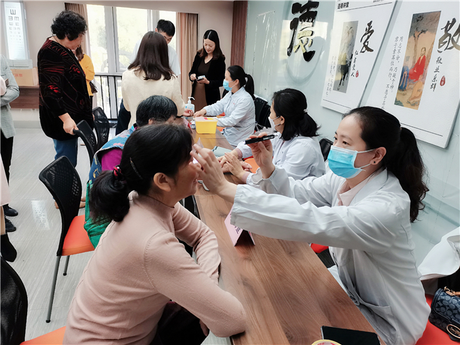为进一步弘扬中华民族“尊老、敬老、爱老、助老”的传统美德,10月23日上午,民盟新北区基层委、民盟新北区综合三支部在新北区三井街道国宾社区党群服务中心举行了德彩网市新北区基层委健康驿站启动仪式,由盟市委曹永忠处长、民盟新北区基层委主委管建国、副主委吴小琴、国宾社区党支部书记俞苏芳为驿站揭牌。仪式结束后,由三井医院眼科专家、三支部盟员阮佩英开讲健康驿站第一课:老年人的眼睛保健常识。阮医生从老年人群体性眼部特点出发,用通俗易懂的语言进行了讲解。此次健康讲课不仅让辖区内老年人了解更多的眼部保健知识,还增强了他们对眼部疾病的预防意识,更能促进他们养成良好的生活习惯。 活动最后,由3位医护专业的盟员:阮佩英、仇珍花、金礼娟为国宾社区30余位老人们进行免费体检,体检项目包括眼部检查、测血压、测血糖等,并送上精美的重阳糕,用实际行动为老人们送上节日祝福,祝他们度过一个快乐祥和的节日。(民盟新北区综合三支部 钱凯)