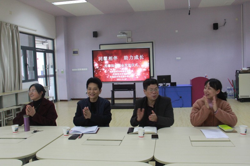 与会领导为新一轮3名受助学生颁发了同馨阳光基金。受助学生代表表示今后一定牢记民盟和学校领导、老师的关爱,用努力学习回报帮助自己的好人。受助学生家长代表也表示了感谢。陈萍、厉雅珍对受助的学生提出了殷切期望。