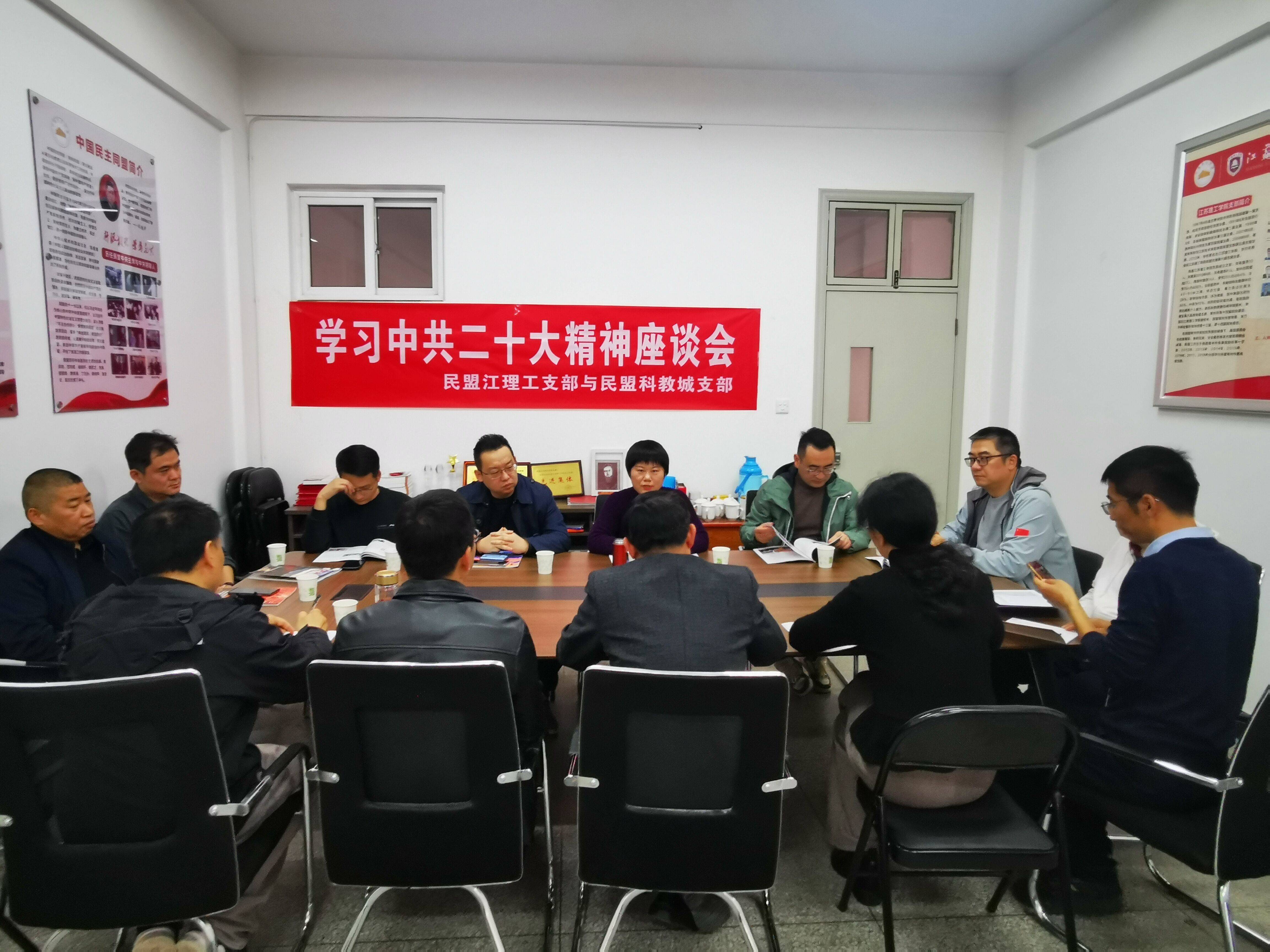 为持续推动学习理解宣传贯彻中共二十大精神,11月26日,民盟江理工支部与民盟科教城总支在江苏理工学院盟员之家联合开展学习中共二十大精神座谈会。学习活动由民盟江理工支部主委宋乃平主持。