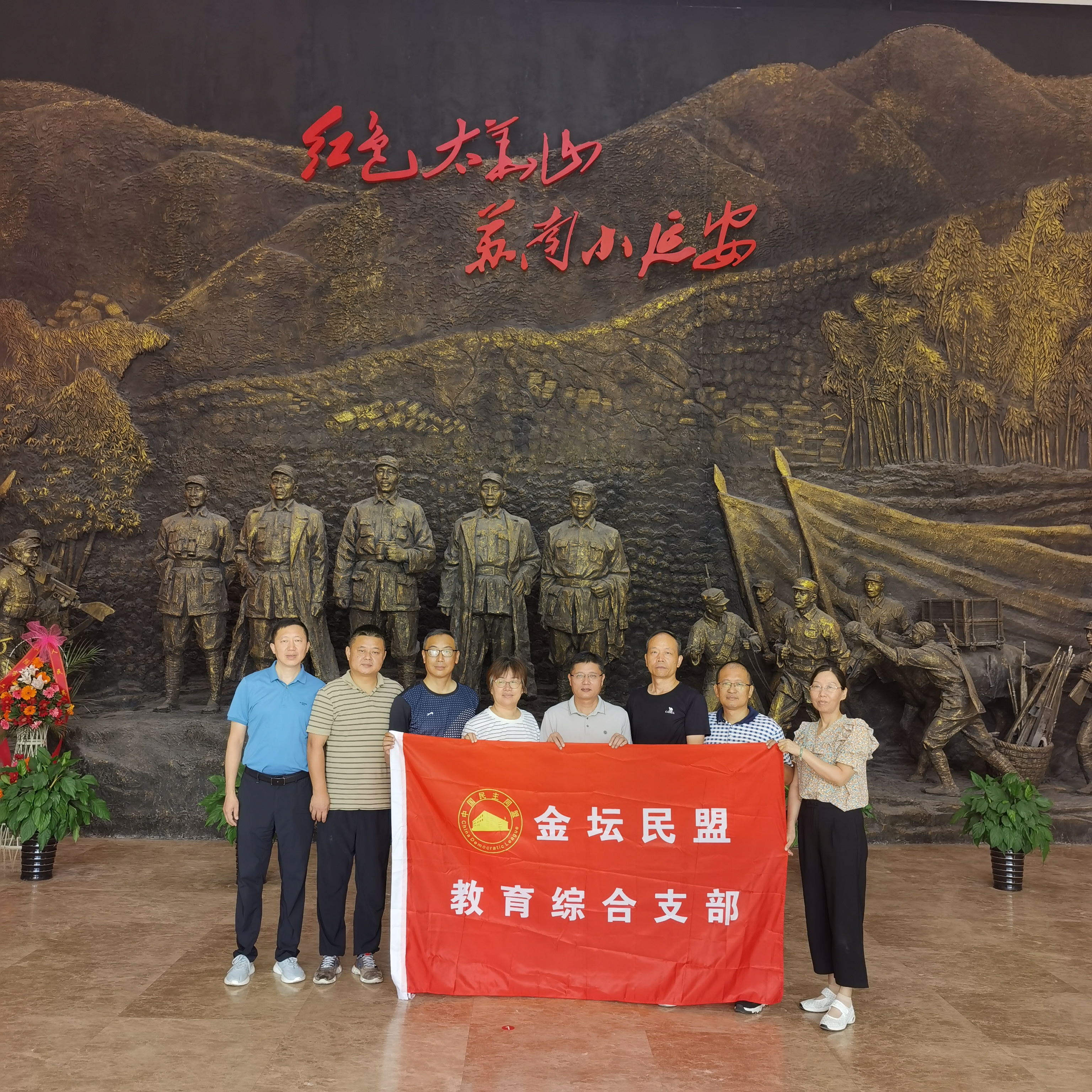 为扎实开展“凝心铸魂强根基、团结奋进新征程”主题教育,贯彻落实民盟中央工作要求,深入学习贯彻习近平新时代中国特色社会主义思想和中共二十大精神,7月27日,金坛民盟教育综合支部组织盟员来到苏南地区著名的爱国主义教育基地——太华山新四军和苏南抗日根据地纪念馆,开展“追寻红色足迹,永葆政治本色”红色之旅体验活动。 地处苏浙皖三省交界的太华山,曾是抗日战争时期苏浙皖边区的革命根据地,是苏南抗日根据地党政军指挥中心,有“红色太华山,苏南小延安”的美誉。纪念馆里陈列的一件件文物、一幅幅图片、一段段文字,都记录了苏南抗日斗争的光辉历史和艰辛历程,体现了军民同仇敌忾的豪情壮志,都是探求历史真谛的缩影。太华河湖丘陵烽火硝烟早已熄灭,但是体现中华文明精髓的铁军精神、军民水乳交融情景仍具有超越时空的生命力。盟员们怀着崇敬的心情,顺着展馆的参观路线,沿着先烈们浴血奋战的革命征程,被那段波澜壮阔的革命历史、老一辈无产阶级革命家崇高的革命理想、不屈不挠的斗争精神和感人的爱国主义精神深深感染。 支部主委袁兆强表示,历史是最好的教科书,金坛民盟教育支部将通过主题教育活动的开展,进一步坚定正确的政治方向,筑牢共同的思想政治基础,永葆盟员政治本色,为金坛教育的高质量发展贡献自己的力量。(葛明洪) |