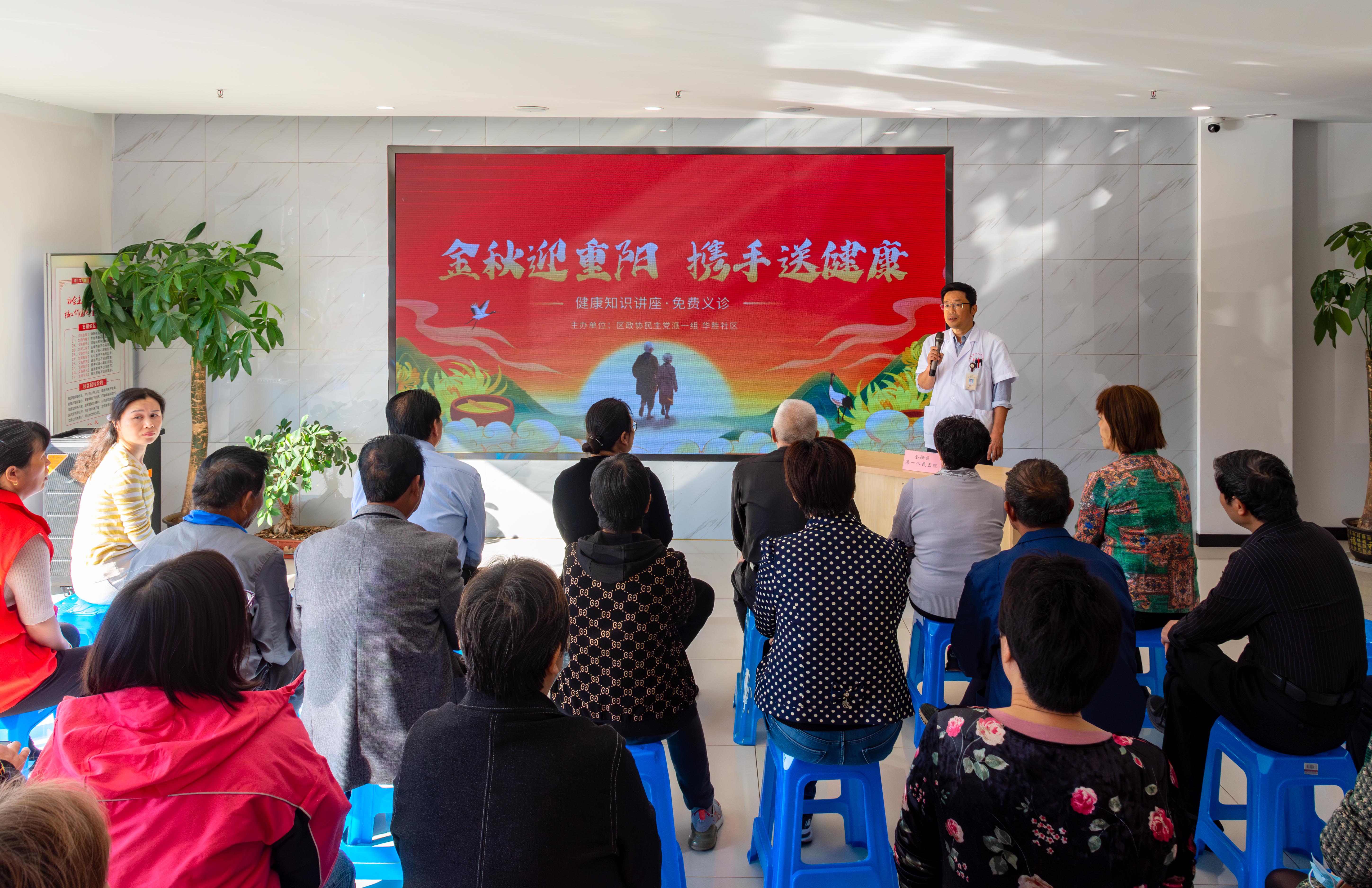 重阳佳节前夕,一场由金坛盟员为主导的政协委员、盟员代表携手社区共同开展“金秋迎重阳 携手送健康”知识讲座及义诊活动,为社区老年人送去健康,让老人们在九九重阳佳节感受到浓浓的关怀。 当天上午八点半,活动在金坛区华胜社区党群服务中心正式开展,首先是金坛第一人民医院内分泌科于雪冰主任和肝胆外科王玉主任分别做《糖尿病的防治》《脂肪肝的新认识》健康知识讲座,两位主任针对老年人常见的身体健康问题进行了详细阐述,并从饮食起居、生活情志、运动休闲等方面给予了现场老年人一些专业提示和建议。 接着,由民盟金坛第一人民医院支部主委朱爱平带领的盟员医疗专家团队,在社区广场进行健康义诊。专家们为社区百余名老年人提供了面对面、零距离的医疗服务,通过免费测量血压、血糖、健康咨询、中医问诊等,详细了解老人的生活习惯和既往病史,进行健康评估,并引导老年人加强健康管理,养成健康的生活习惯。 据悉,走进社区、服务居民是民盟金坛第一人民医院支部坚持十多年的经典社会服务项目,该项目传递了健康知识、解答群众疑惑,并根据实际需要不断改进和优化,让老百姓在家门口就能及时得到专业的医疗服务,在群众中建立了良好口碑。 金坛民盟一直以来关注老年群体的生活和养老事业发展,多次围绕老年人医疗、养老等方面内容积极建言献策,此次活动中,金坛政协民盟组热情加入,不仅是深入基层接触感受医疗健康服务的现实情况,也为更精准地收集群众需求,反应百姓呼声,寻找解决路径积累了素材和经验,是一次政协、民盟、基层党群组织携手联盟为群众谋福祉的有益尝试。 (徐晓燕)