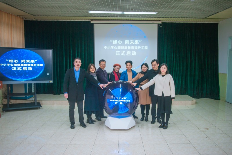 最后,黄勇、戴晓娥、张珍、沈大伟、张军等领导共同上台点亮启动球,正式启动“经心 向未来”中小学心理健康教育提升工程。